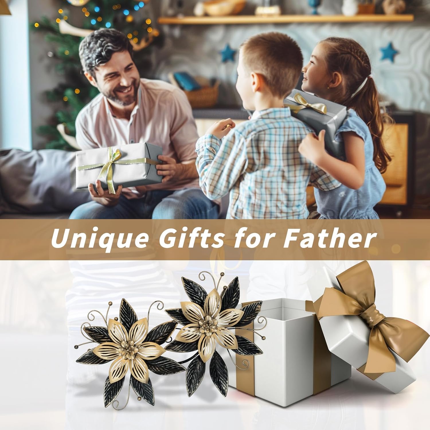 Black Gold Metal Flowers Wall Decor,15″ 3D Multi-layer Modern Floral Art, Rustic Distressed Hanging Decor for Indoor, Bedroom Living Room Garden Patio, Home Decoration Accent