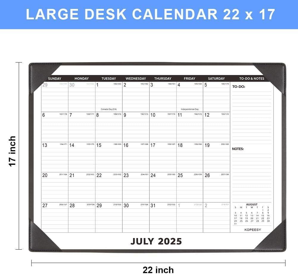 Large Desk Calendar 2025-2026 with Desktop Mat, KOPEESY 22″ x 17″ Desktop Calendar, 18 Months From July 2025 to December 2026, Office Supplies Desk Blotter Calendar for Home School and Office
